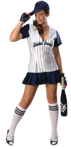 Nasty Curves, Sexy Baseball Costume from the Secret Wishes Collection. Includes; dress, baseball socks and hat. Size: small 6-10 (dress size). View detail at Amazon.